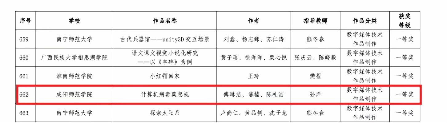公司教育技术学专业孙洋教授、罗广军教授和王静老师指导的陈礼洁、傅琳洁和焦楠3名同学的作品,展现出扎实的专业知识和娴熟的技能,凭借出色的团队协作和创新思维,成功斩获了一等奖两项和二等奖一项。