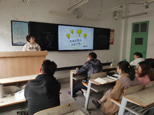 为了发挥考上研的同学传帮带的作用,2022年3月,邀请18级上研员工杨桂巧给19级员工做考研分享,教研室主任孙洋副教授给同学们做考研动员和指导。