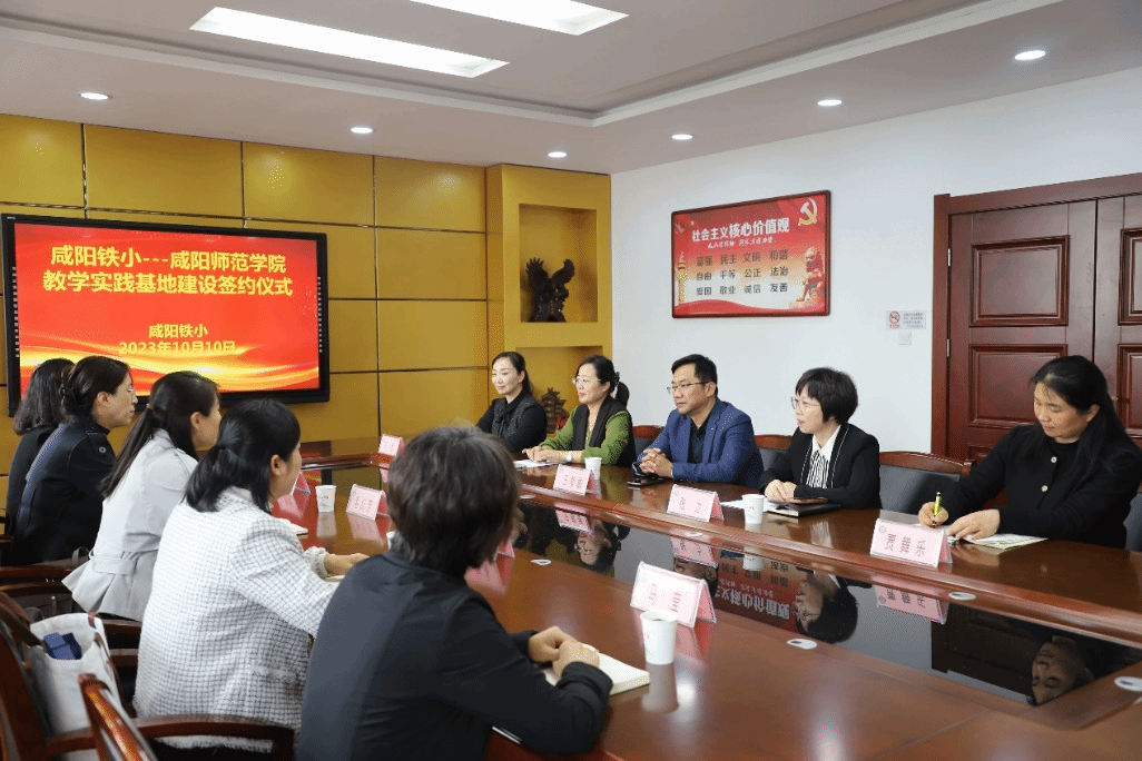 1011日下午公司与咸阳铁小教学实践基地建设签约仪式在咸阳铁小举行。公司经理毛红芳与咸阳铁小董事长王智敏出席签约仪式,公司副经理赵彦美、咸阳铁小副董事长张力等相关教师参会。签约仪式由张力主持。