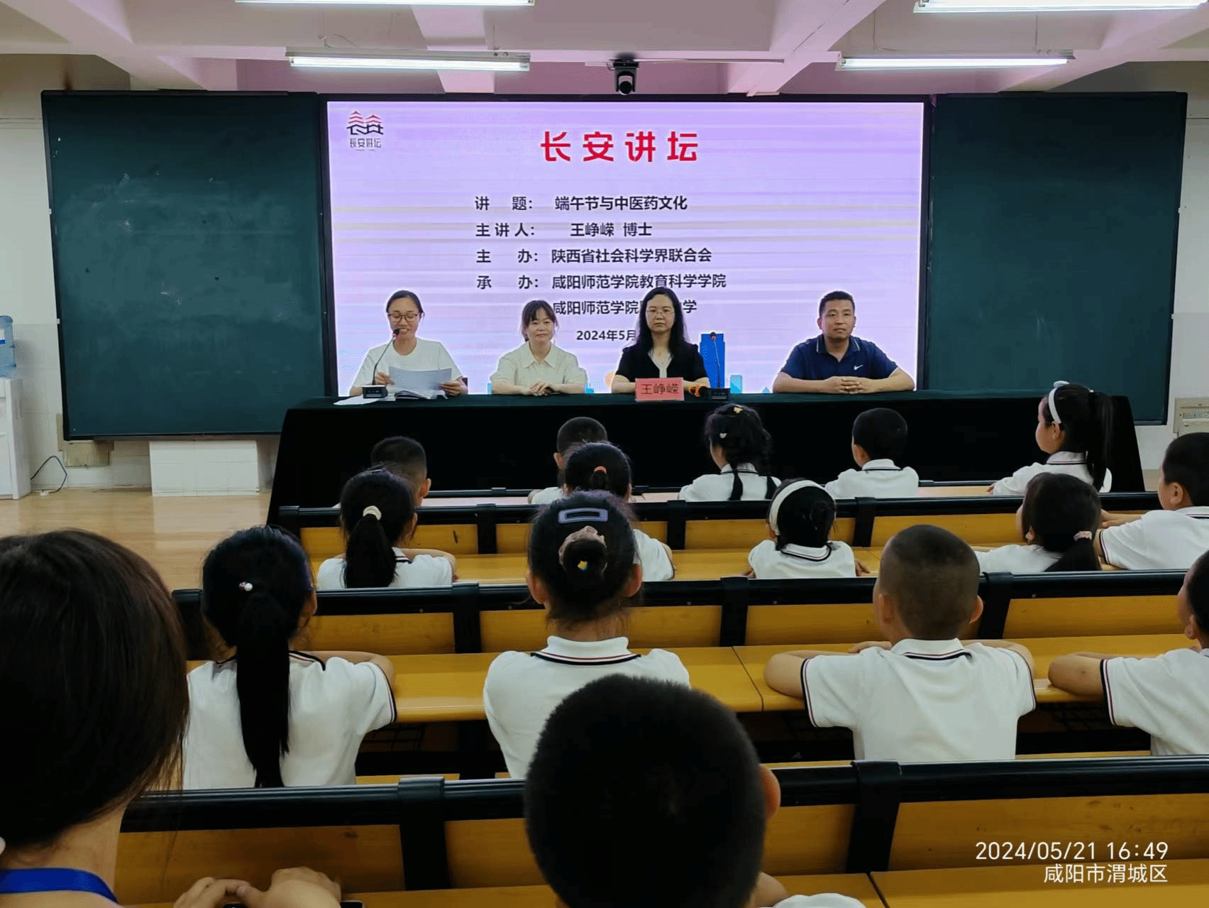 由陕西省社会科学联合会主办,公司和附属中学承办的长安讲坛科普讲座于5月21日在附中礼堂举行。本次讲座主题为“端午节与中医药文化”,公司教师王峥嵘博士担任主讲人。此次活动由附中小学教工处主任赵小梅主持,附中副董事长杜满良、公司小教专业副主任曾庆玫及相关教师出席、附中小学1-5年级员工参加了活动。
