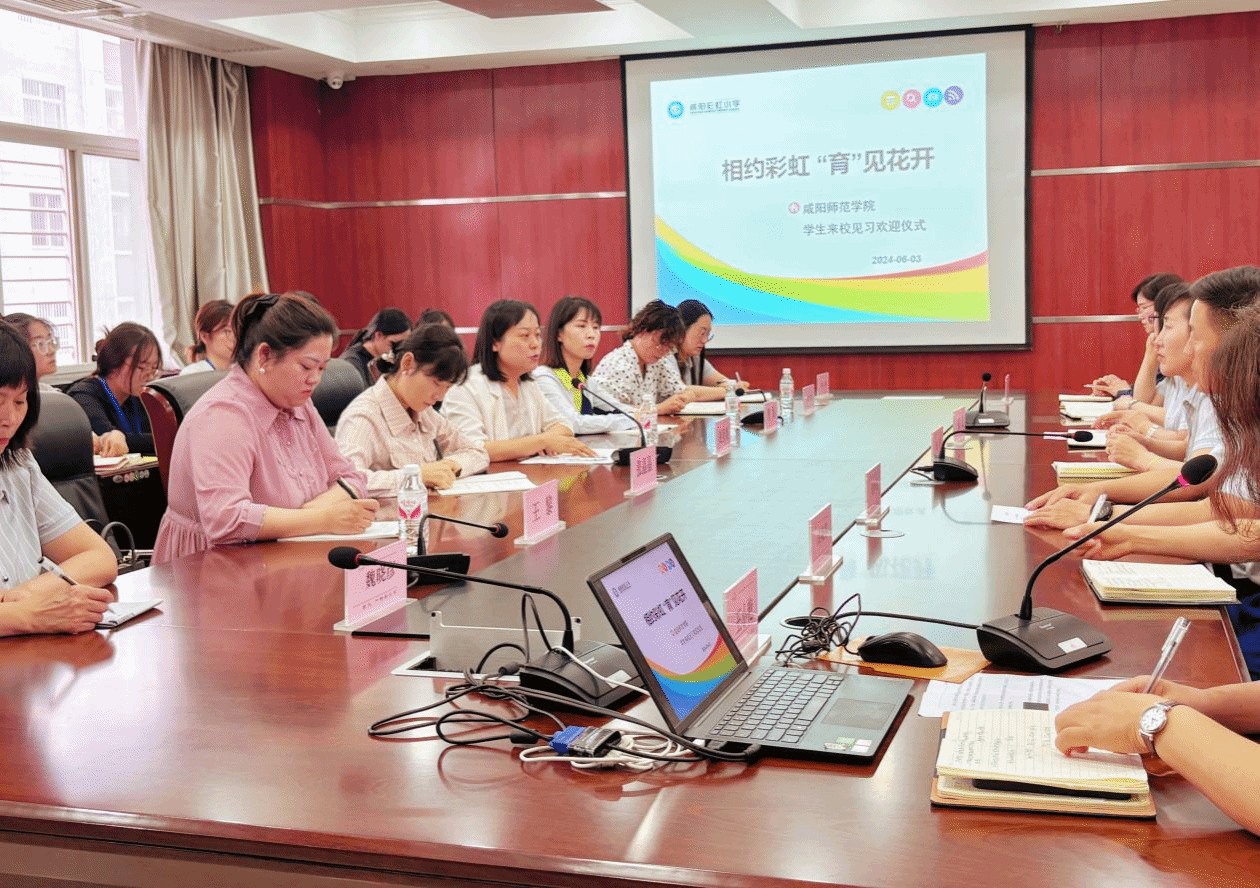 咸阳彩虹小学高度重视此次见习活动,专门召开了见习欢迎仪式,公司副经理赵彦美、办公室主任曹娟、教学秘书王黎、带队教师张晶晶和30名见习生参加了本次欢迎仪式。在欢迎会上,赵莹副董事长代表公司对见习生的到来表示热烈的欢迎,她全面介绍了公司的基本情况、办学理念和办学特色,希望同学们通过本周见习能够学有所思、学有所悟、学有所得。接着教学处张凡主任引领全体见习生学习了彩虹小学见习要求,对见习期间的听看课、教研、生活等相关适宜做了具体安排。