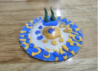 做手工应该算是一件快乐的事吧,他们会有成就感吗,哈哈我只记得有好多小豆丁哭着喊我说我不会呜呜呜,这个是彤彤全程自己做的,太棒了!