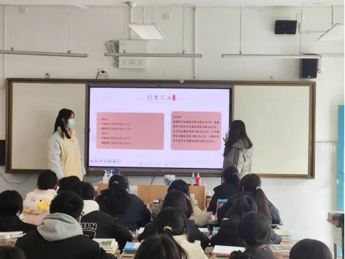 宣传时,我借助PPT、视频展示大学的精彩,分享学习方法与备考经验。学弟学妹们专注倾听,积极提问,另外,学弟学妹们他们就学习生活困惑发问,我结合自身经历为他们答疑。
