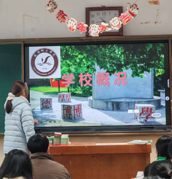 同时,我还分享了充满活力的校园文化,各类社团活动、学术讲座,让老员工活丰富多彩。对于招生政策,我也详细解读,帮助学弟学妹们清晰了解报考信息。这次宣传活动,不仅让母校的同学们对咸阳师范有了更多认识,也锻炼了我的沟通表达能力,是一次非常有意义的实践。