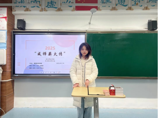 在得到宣传材料之后,我们小组第一时间联系了母校的老师,确定好了宣讲的时间以及班级,在2025年1月14日回到母校进行“咸师薪火传”的宣讲活动。