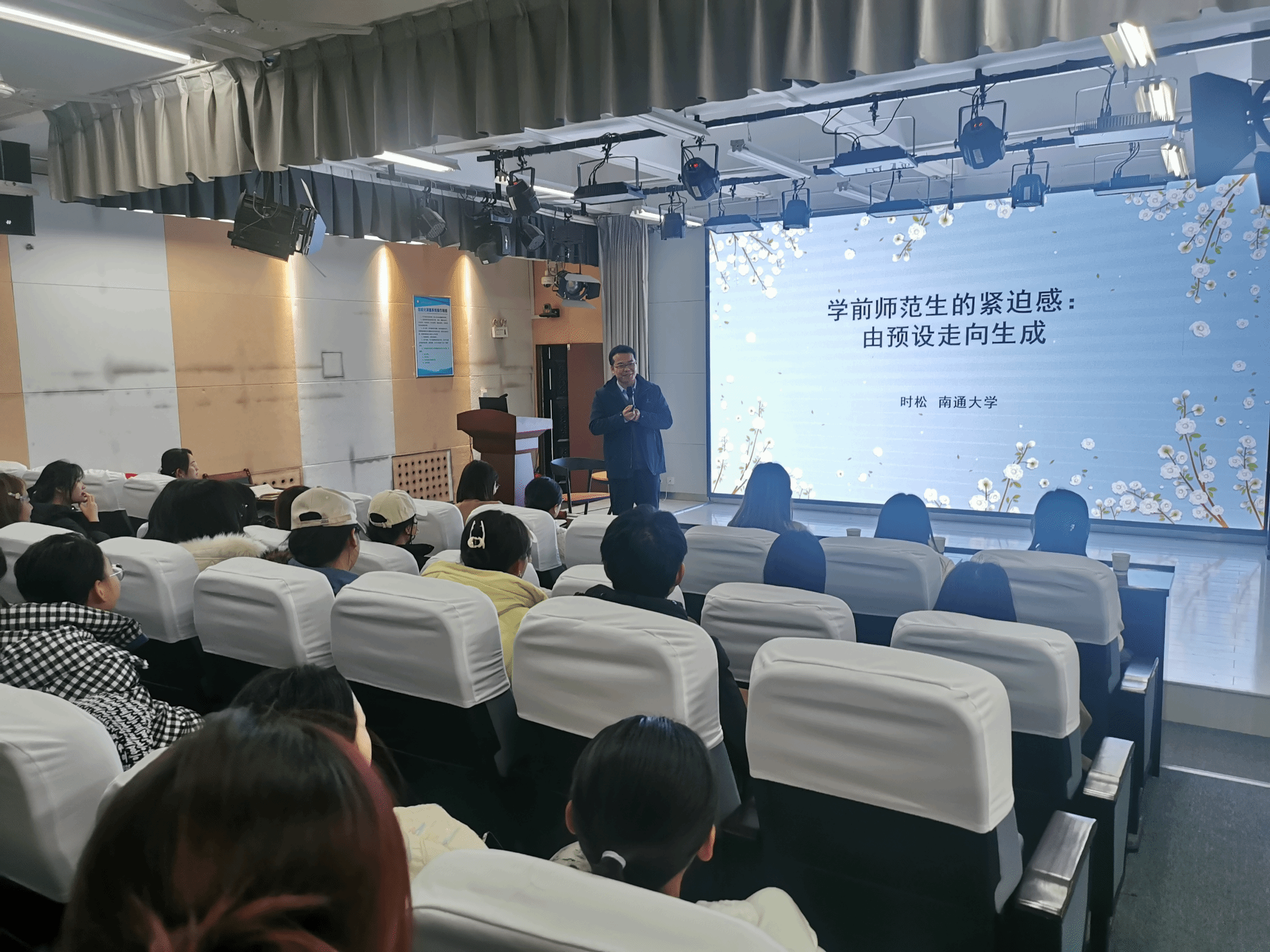 2023年12月1日上午,best365邀请南通大学时松博士在3号楼521教室作题为“学前师范生的紧迫感:幼儿园课程从预设走向生成”的学术报告, 该报告由best365学前教研室主任官瑞娜老师主持,本报告系best3652023年系列讲座中的第八次讲座。