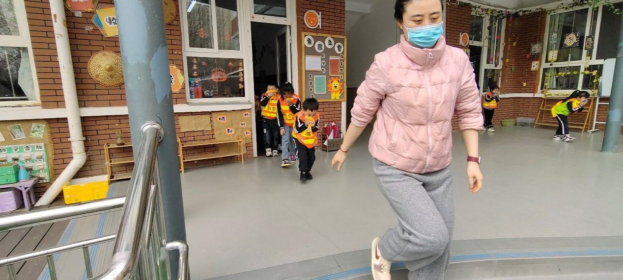 活动过程中学前教育专业实习生迅速按照既定的应急预案,引导幼儿用湿毛巾捂住口鼻,弯腰低姿,沿着预定的疏散路线,迅速、有序地向操场安全区域撤离。整个疏散过程紧张有序,仅用时6分钟,实习生配合幼儿园教师全部安全到达集合地点。