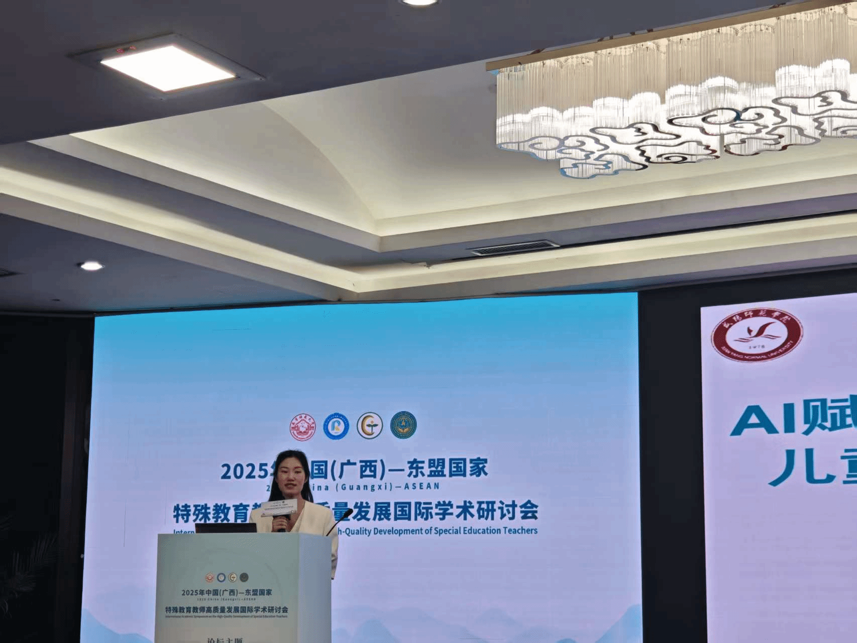 10月11日,2025年中国(广西)- 东盟国家特殊教育教师高质量发展国际学术研讨会在广西壮族自治区南宁市隆重举办。本次会议为期两天,汇聚中国、马来西亚、新加坡、韩国、印度尼西亚等多国特殊教育领域专家学者,围绕“特殊教育教师高质量发展”主题展开深度交流,公司特殊教育系主任张倩、教师宋晓禹受邀参会,并且张倩老师进行分论坛专题学术汇报。