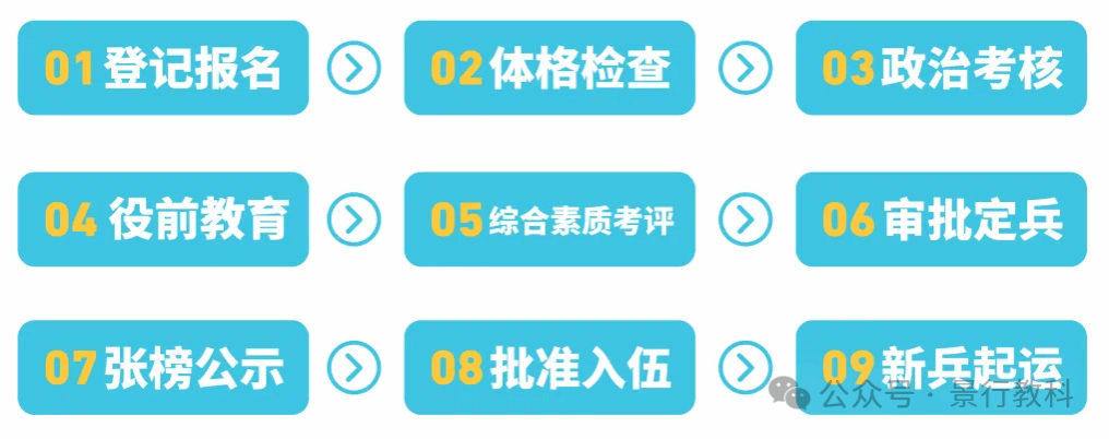 从应征报名到新兵起运,所经历的每个环节对应征青年都至关重要。小伙伴们可以提前了解应征流程与重要的时间节点。