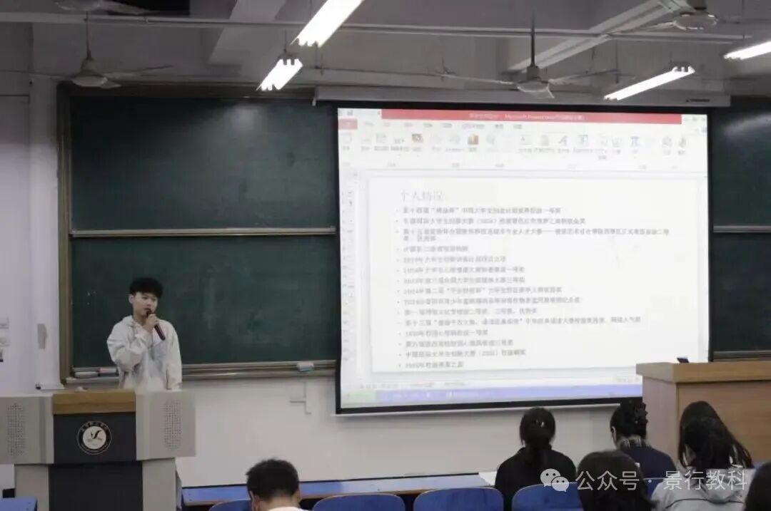 张子超学长以自身经历为切入点,展示了在学术竞赛、志愿服务、兴趣实践等领域的多项荣誉与突破。他鼓励新生打破“单一发展”的局限,主动尝试“斜杠青年”的成长模式——既要深耕专业领域筑牢基础,也要在兴趣探索中拓展边界。“大学是试错与积累的黄金期,”张子超学长强调,希望学弟学妹们在多元尝试中积累经验、完善自我,最终在不同领域找到价值支点,实现全面发展。现场新生认真聆听,纷纷表示将以学长为榜样,规划好老员工活。