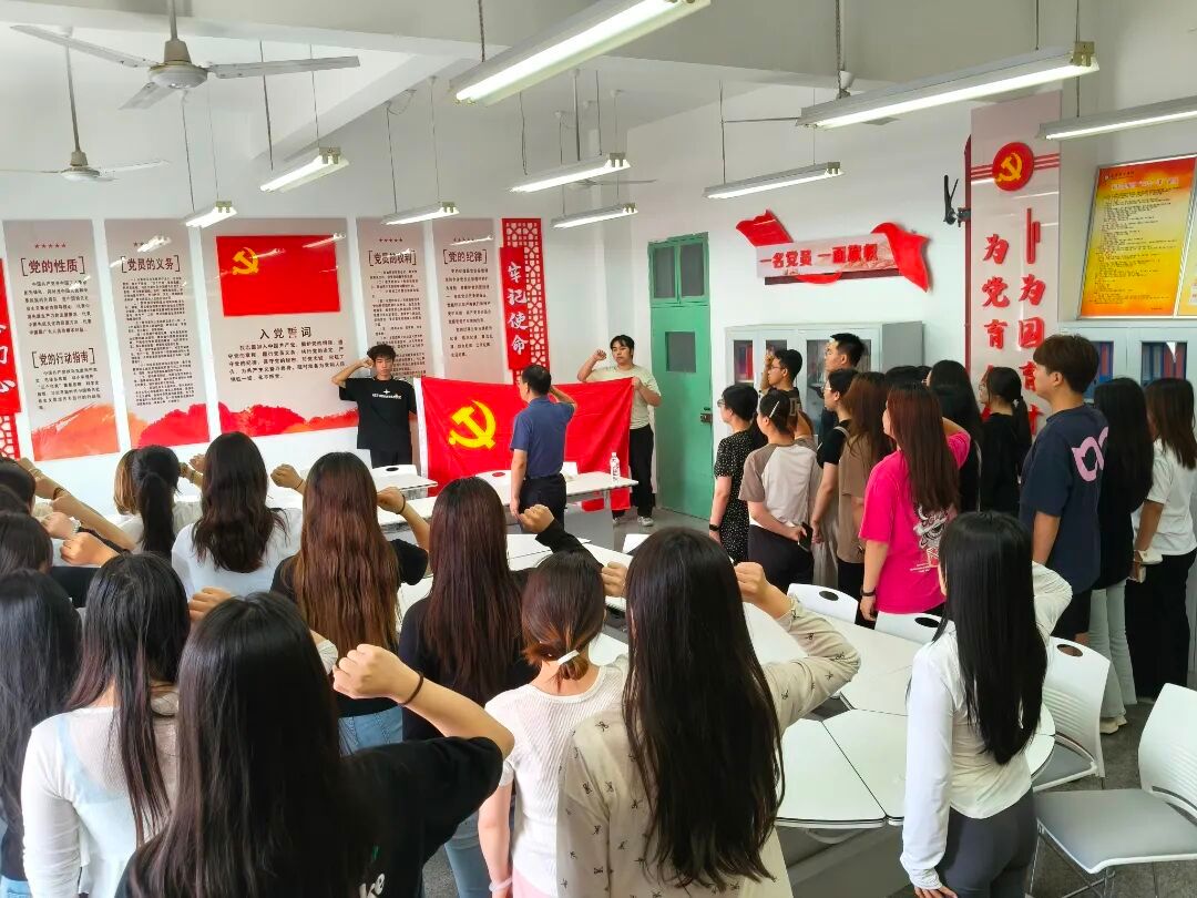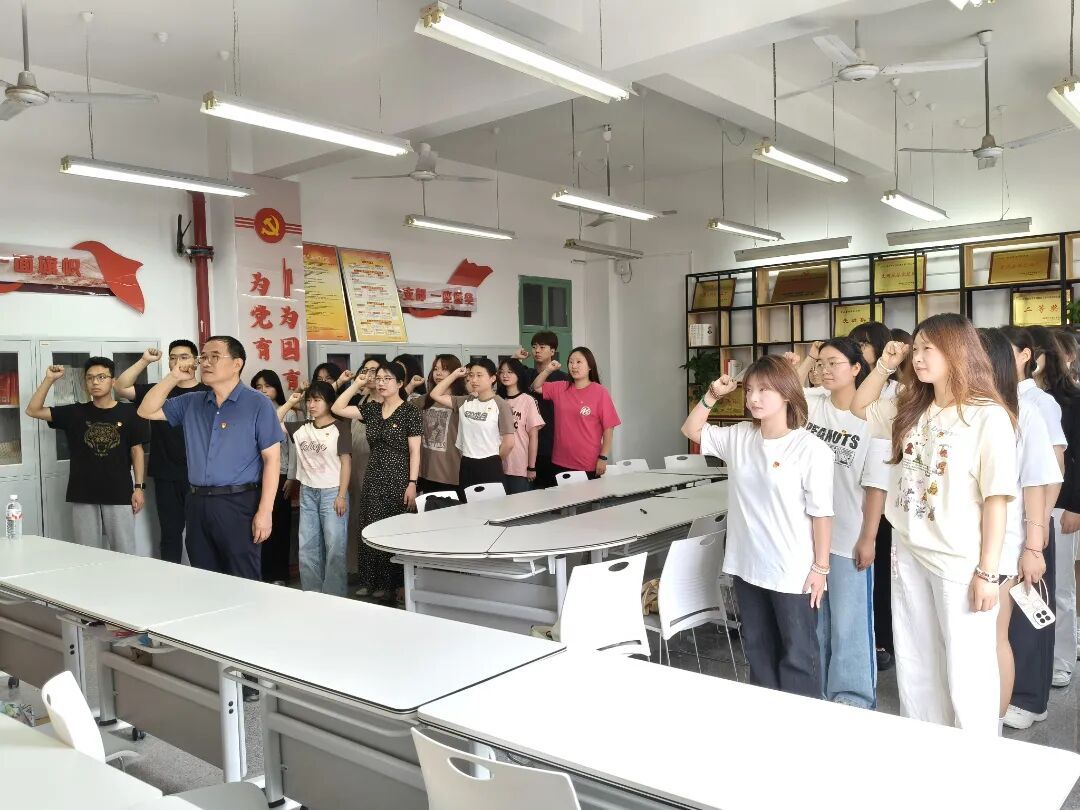 活动在激昂的国歌声中正式拉开帷幕。首先,孟庆辉宣读2025年预备党员名单,并带领新发展党员庄严宣誓,铿锵誓言,展现出同学们对党的无限忠诚和为共产主义事业奋斗终身的坚定决心。随后,孟庆辉对新党员的加入表示热烈祝贺,并对他们提出了殷切期望。他强调,入党是人生的重要里程碑,不仅意味着荣誉,更意味着责任与担当。希望新党员们坚定理想信念,牢记党的宗旨,不断提高政治素养和业务能力,在学习、工作和生活中以身作则,发挥好党员的先锋模范作用,在新时代的征程中书写属于自己的壮丽篇章,为党和人民的事业添砖加瓦。