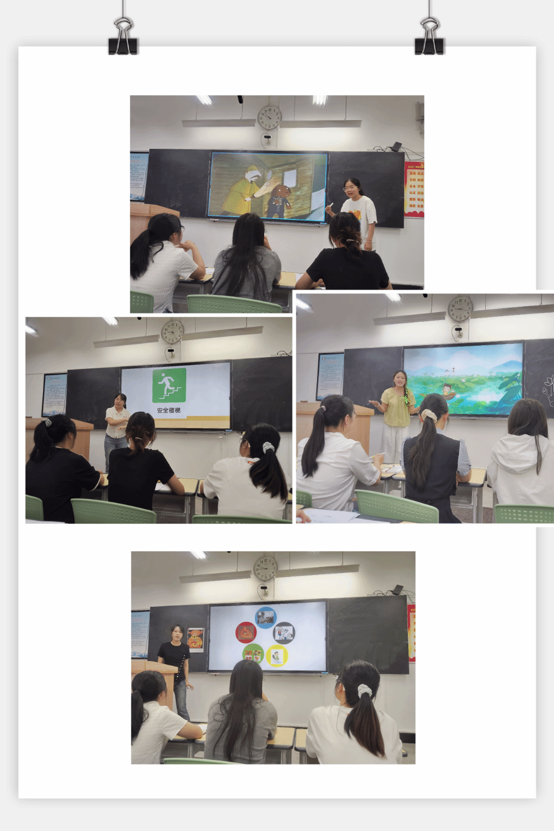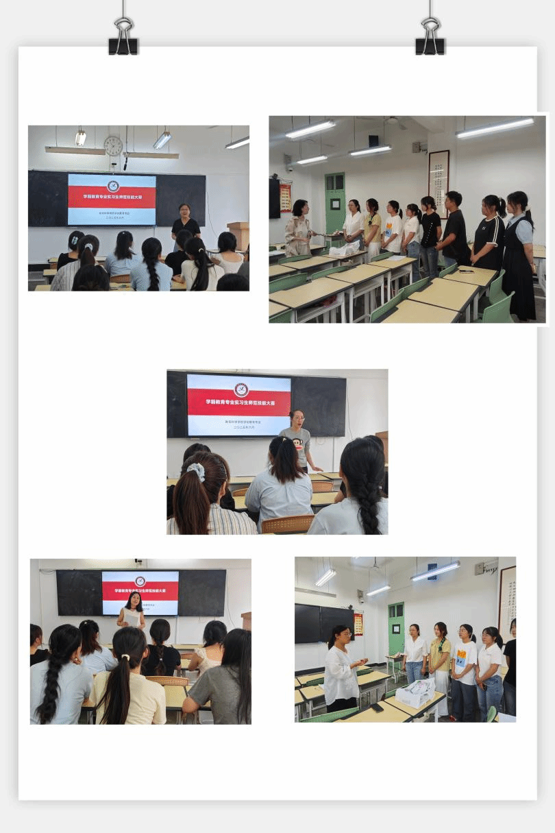 6月25日上午,学前教育专业教育实习汇报课展示与研讨活动在弘道楼407、弘道楼512如期举行,本次参加活动的员工是来自2022级刚刚经历完教育实习工作的同学,本次大赛邀请带队实习教师担任评委,分为两个小组进行。