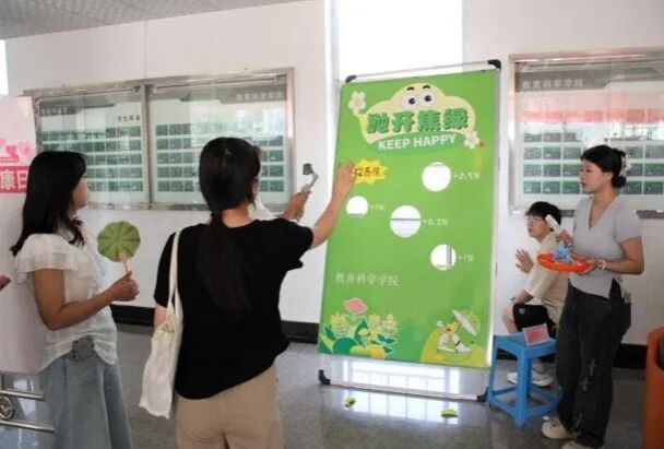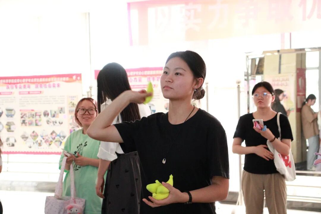 参与者通过有趣的抛香蕉小游戏,将心中的烦恼凝聚在一个个绿色小香蕉上用力抛出,象征着抛开焦虑,同时可累计积分兑换小礼品一份。师生在参与中充分享受游戏乐趣,在趣味中摆脱焦虑思想,积极面对生活。